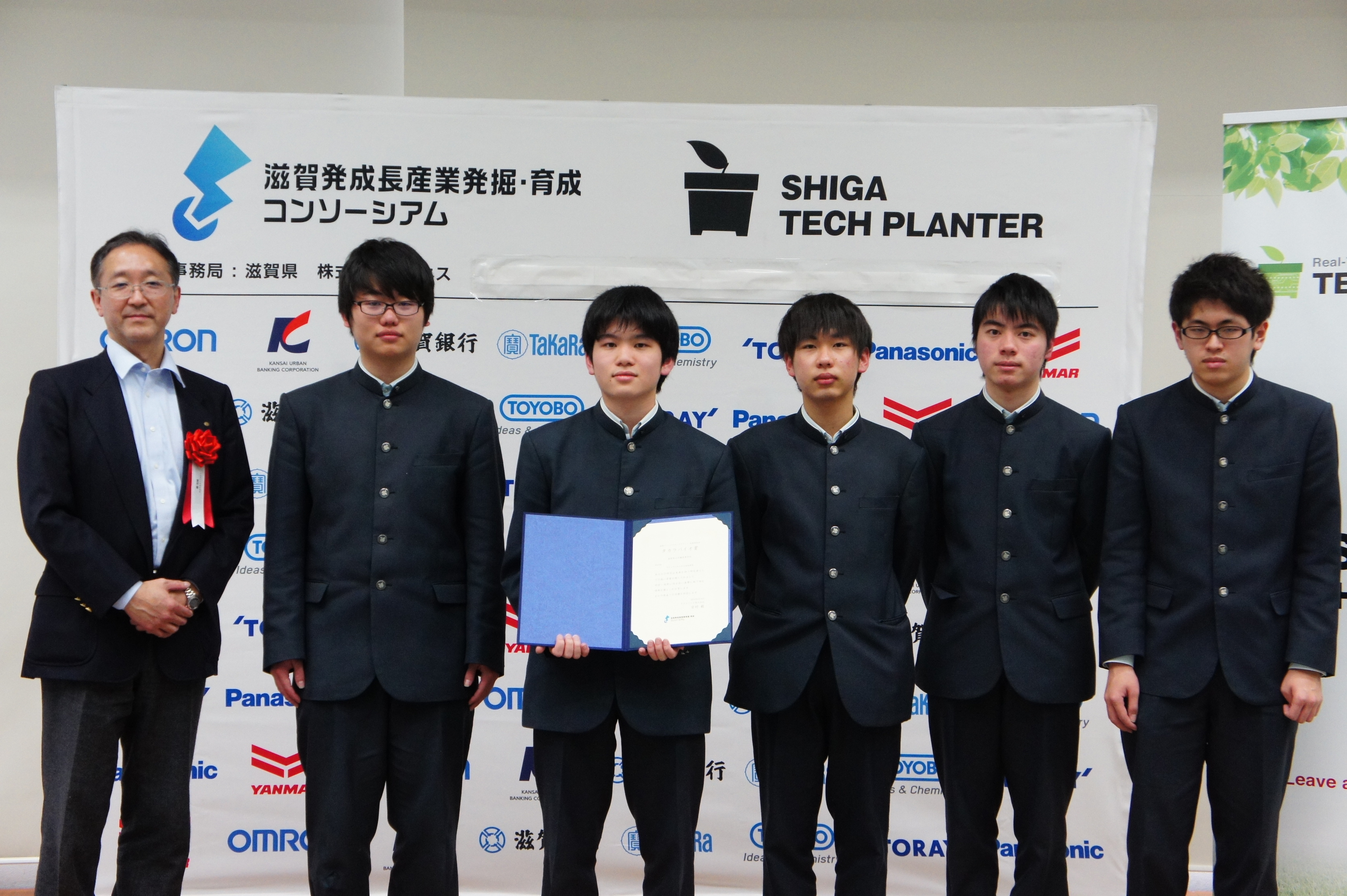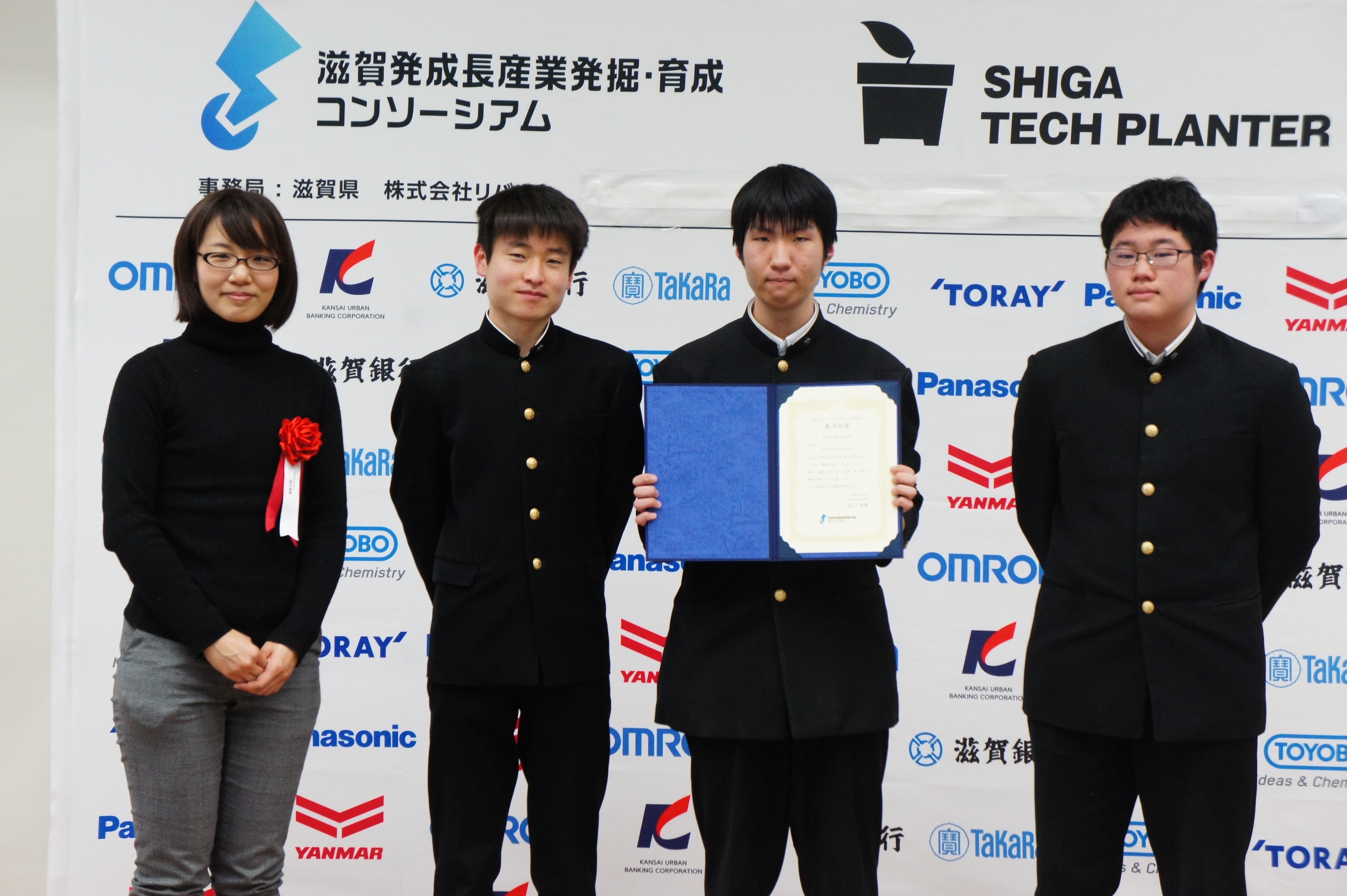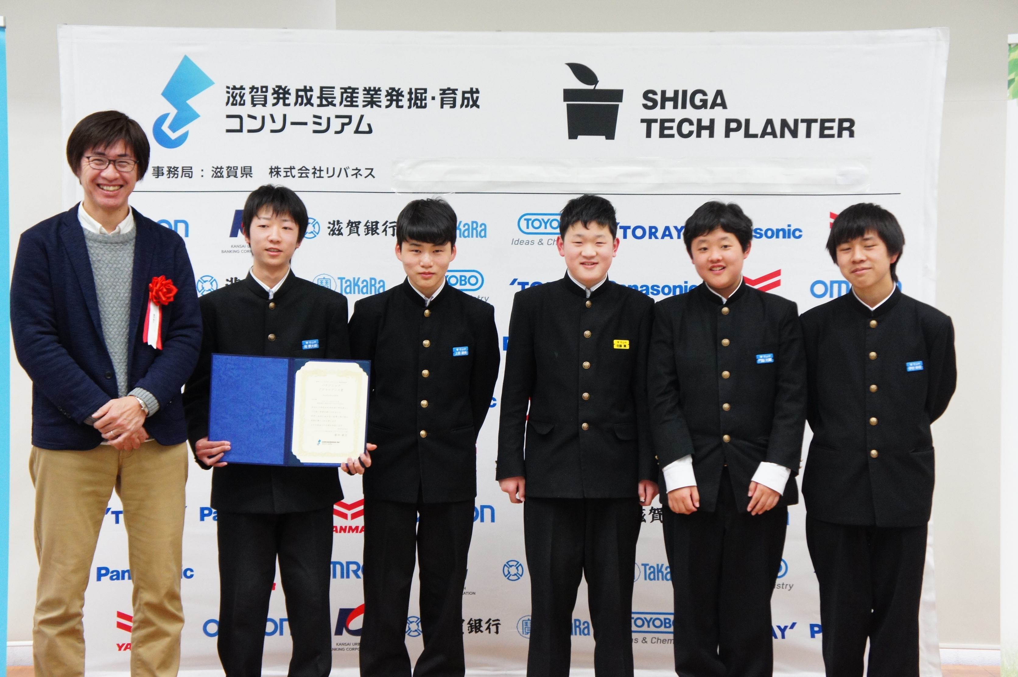 2019年3月16日に、滋賀ジュニアリサーチグラントの採択チームによる最終成果発表会を開催しました。当日は採択チーム・審査員・見学者を含めて70名の参加者が集まりました。会場では、採択チームによる熱いプレゼンテーションが繰り広げられ、多くのディスカッションが生まれました。全採択チームに奨励賞を授与し、審査の結果、5つの企業賞が決定しました。